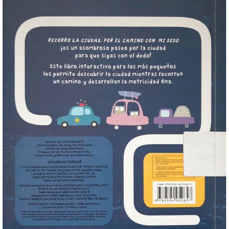 Recorro La Ciudad, Por El Camino Con Mi Dedo / Shuttlewood Reseña: Libro interactivo, ideal para niños y niñas entre 4 a 5 años. Recorro la ciudad por el camino con mi dedo es un asombroso paseo por la ciudad para que sigas con el dedo. Este libro interactivo para los más pequeños les permite descubrir la ciudad mientras recorren un camino y desarrollan la motricidad fina.