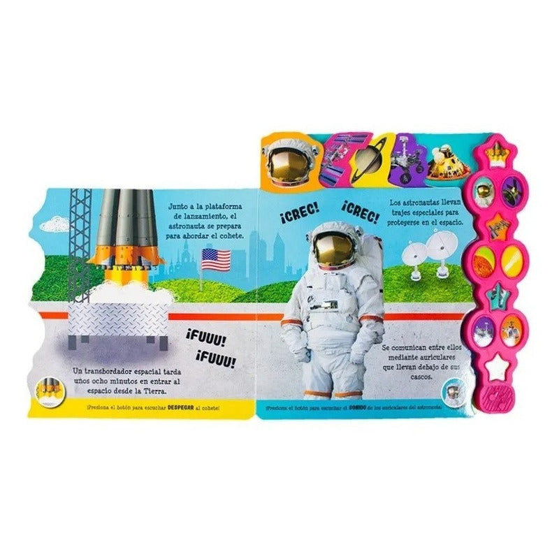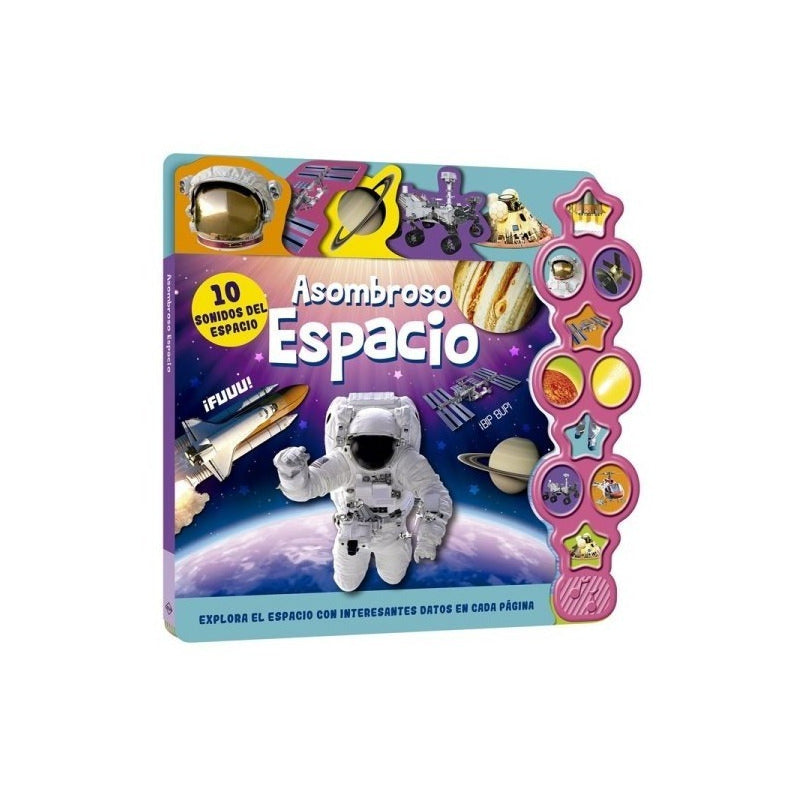 Asombroso Espacio (libro Con Sonidos) / Lexus ¡FUUU! BIP¡ ! ¡CREC! Aprende todo sobre el espacio con este libro ruidoso y con datos interesantes. Con 10 increíbles sonidos y un tablero con sencillos bonotes, es la introducción perfecta al espacio exterior. Libro de tapa dura en cartoné plastificado 10 páginas con imágenes a todo color Contiene módulo con 10 sonidos divertidos Formato: 27 x 27 cm