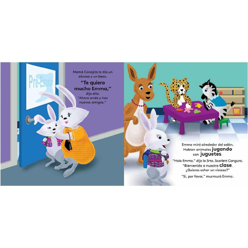 Emma va a la escuela (tapa dura) / Lexus 12 Páginas. Es el primer día de clases! Emma se siente un poco nerviosa cuando ingresa al salón. ¡Pero después de conocer a su nueva profesora, la Srta. Scarlett Canguro, y a sus nuevos amigos, se da cuenta que la escuela es muy divertida! Tapa dura e interiores en cartón plastificado resistente Bellas ilustraciones 12 páginas todo color Formato 19.5 x 19.5 cm