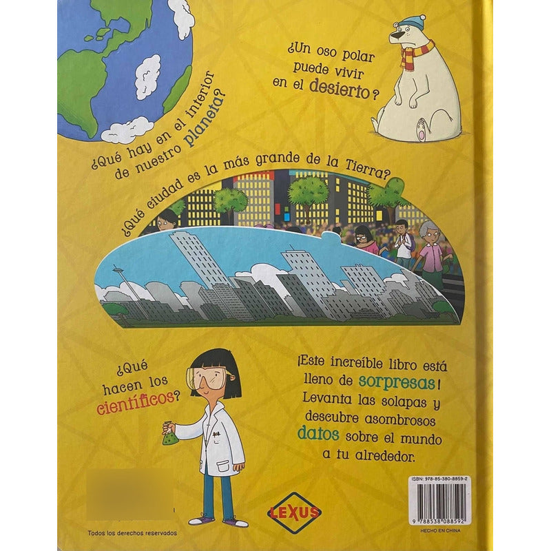 Preguntas Y Respuestas Levanta Solapas / Lexus Reseña: ¡Este increíble libro está lleno de sorpresas! Levanta las solapas y descubre asombrosos datos sobre el mundo a tu alrededor. ¿Qué hay en el interior de nuestro planeta? ¿Un oso polar puede vivir en el desierto? ¿Qué ciudad es la más grande de la Tierra? ¿Qué hacen los científicos? ¡Impresionantes datos, estadísticas y archivos! Volumen encuadernado en tapa dura Formato 22,5 x 26,5 cm. Páginas impresas a todo color en cartón plastificado y resistente
