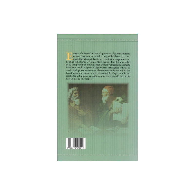 Elogio De La Locura / Erasmo De Rotterdam Reseña: 128 páginas. Un ensayo considerado uno de los catalizadores de la reforma protestante. En Elogio de la locura Erasmo crea un espejismo seductor y contundente que, impregnado del humanismo cristiano que preconizaba, le sirve de excusa para describir la necedad del mundo y arremeter a dentelladas contra todo lo humano y lo divino. Erasmo supo expresar con gran talento literario y con amplísimo saber los cansancios, las esperanzas, las dudas, las ambigüedades de una época turbada e incierta, pero son tantos los juicios contradictorios que expone en su obra, tan diversas las actitudes que despertó entre los hombres más insignes de su tiempo, que sus contemporáneos no llegaron a concluir nunca una síntesis final de su pensamiento.