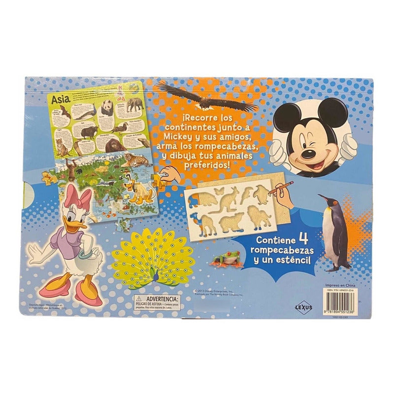 Mickey Mouse El Maravilloso Mundo Animal / Lexus Reseña: 10 Páginas. Recorre los contenientes junto a Mickey y sus amigos. Arma los rompecabezas y dibuja a tus animales preferido con la ayuda del esténcil. Libro en tapa dura en cartoné plastificado 10 páginas a todo color Formato: 33 x 23 cm Incluye 4 rompecabezas y un esténcil de gran formato