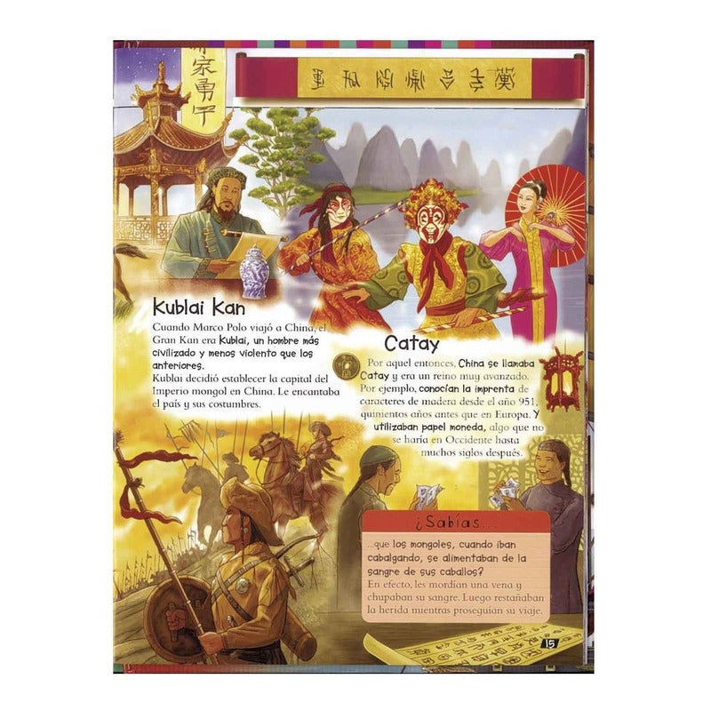 Marco Polo Viajero Y Explorador / Lexus Reseña: Gracias a Marco Polo, comerciante veneciano, escritor y diplomático, los horizontes del mundo se engrandecieron hasta hacerse universales; él realizó el viaje más largo de la historia hasta ese momento y lo dejó escrito para la posteridad. Este libro, lleno de datos, curiosidades, recuadros y preciosas ilustraciones, ofrece a los jóvenes lectores una forma entretenida y diferente de adentrarse en la biografía del viajero más famoso de la Historia. Libro encuadernado en tapa dura con estampado sectorizado Páginas impresas a todo color en papel couché grueso Bellas ilustraciones realizadas especialmente para este título Formato 17.5 x 23 cm Edad: 6+ años