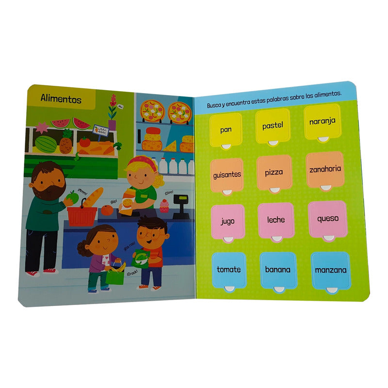 A los pequeños les encantará levantar y mirar bajo las solapas de estos libros de cartón llenos de imágenes para encontrar, contar y aprender