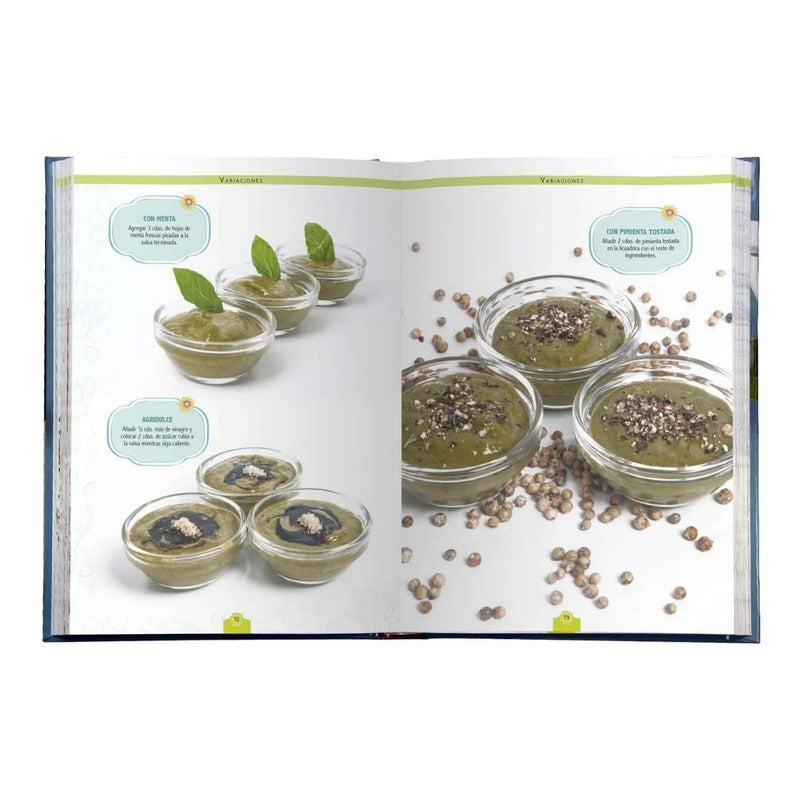 Salsas / Lexus Reseña: 212 Páginas. Las salsas se preparan de diversas formas: pueden ser horneados, hervidos, licuados, colados, triturados o picados. Suelen incorporarse a una receta típica base del país o lugar donde se prepara la salsa. Su objetivo principal es servirla como acompañamiento a un plato que puede ser crudo, cocido, frío o caliente. En SALSAS presentamos diversas recetas a base de ingredientes fríos o caliente que servirán para acompañar cualquier tipo de plato ya sea un plato típico, tradicional o el que deseemos crear como profesionales de la cocina. Cualquier salsa que preparemos va a reflejar siempre la habilidad y creatividad de cualquier cocinero ya que permitirá jugar con temperaturas, sabores, colores, variedad de ingredientes y tipo de textura. Un volumen lujosamente encuadernado en tapa dura Formato 19 x 26 cm. 212 páginas impresas a color Excelentes fotografías tomadas especialmente para esta obra