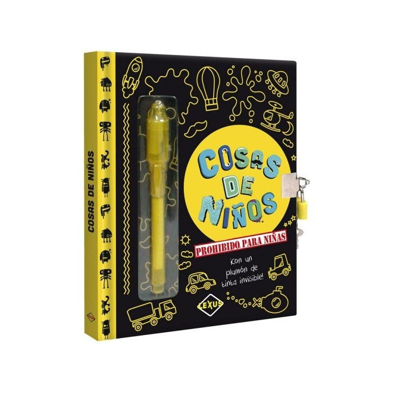 Cosas De Niños Prohibido Para Niñas / Lexus Reseña: 98 Páginas. Mantiene todos tus secretos a salvo con este diario. Complétalo con datos importantes, responde las preguntas y hasta coloca fotos. ¡Nadie podrá ver lo que escribes, gracias a la tinta invisible del bolígrafo mágico! Un volumen encuadernado y acolchado con estampado sectorizado e interiores en papel especial Formato: 15 x 19 cm. Ilustraciones realizadas especialmente para la obra Incluye un plumón de tinta invisible que se visibiliza al reflejar la luz del bolígrafo sobre la hoja.