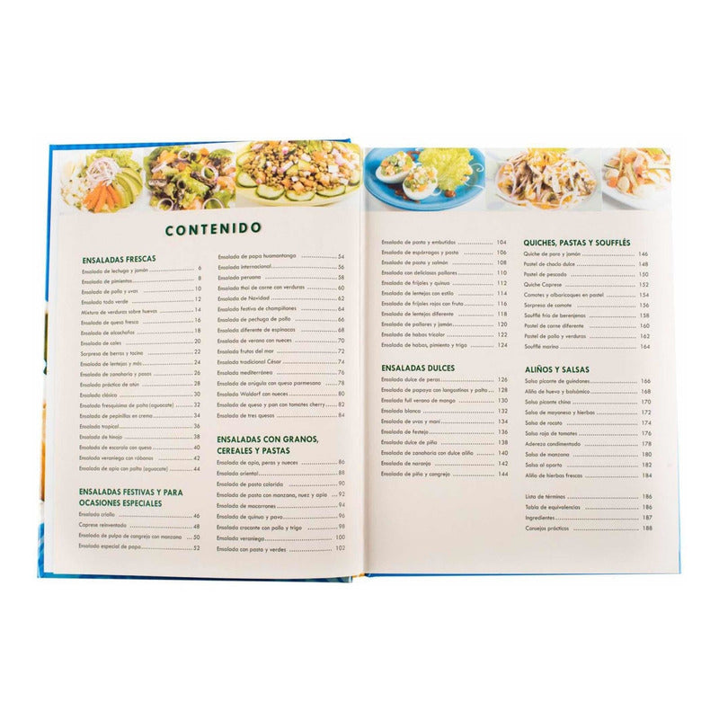 Lo Mejor De Las Ensaladas / Lexus Reseña: La naturaleza es una despensa maravillosa que nos provee de todo tipo de productos: frescos vegetales, nutritivos granos y cereales, carnes blancas y rojas de diferentes tipos, lácteos, aromáticas especias, entre otros. Con creatividad y de manera muy sencilla podemos combinar todos estos ingredientes para preparar exquisitas ensaladas, por ello ponemos en sus manos este libro en el que encontrará las mejores recetas para sorprender a su familia y amigos. Parte importante de una alimentación balanceada por su contenido de vegetales -tanto crudos como cocidos- las ensaladas nos ayudan a mantener la salud y la buena forma física. Pero sus virtudes van mucho más allá y hay ensaladas que incluyen suculentos ingredientes y son las perfectas acompañantes de las cenas y platos de fiesta. Las ensaladas son sencillas de preparar y generalmente toma apenas unos minutos tenerlas listas. Por si fuera poco, ofrecen infinitas posibilidades de combinación para crear deliciosas alternativas: criollas, dulces, festivas y para ocasiones especiales, o preparadas con granos, cereales y pastas. Como complemento, usted encontrará también recetas de sabrosos quiches, pasteles y soufflés para acompañar la ensalada de su preferencia y los más ricos aliños con los que dará un gusto distinto a cualquier receta. Abra su paladar al mundo de las ensaladas y deléitese con la completísima y variada selección que aquí le presentamos. Llenas de color, sabor, texturas y diversidad de nutrientes, son la perfecta elección al momento de elegir el mejor plato para engalanar su mesa.
