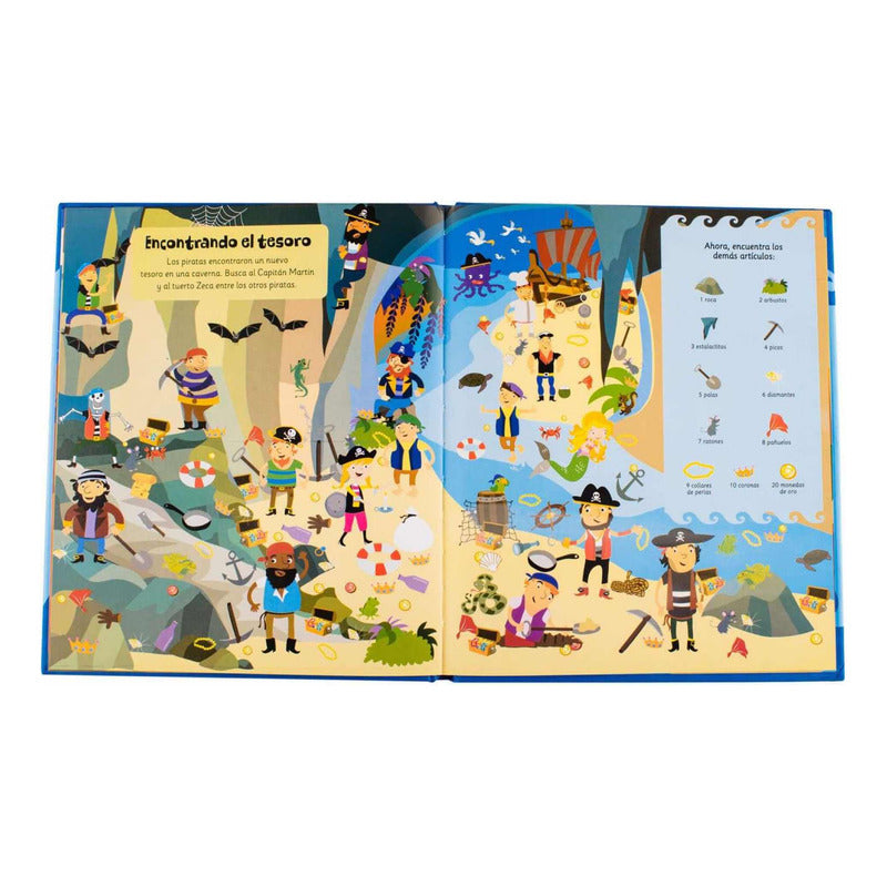Encuentra Piratas Divertidos / Lexus Reseña: 14 Páginas. Ayuda a los piratas a encontrar muchas cosas mientras viajan por los siete mares. Diviértete con estas emocionantes aventuras. Libro de tapa dura acolchada con segmentación de letras brillante. 14 hojas de papel grueso brillante. Ilustraciones en toda la hoja y a full color. Dimensiones 25 x 22 x 1