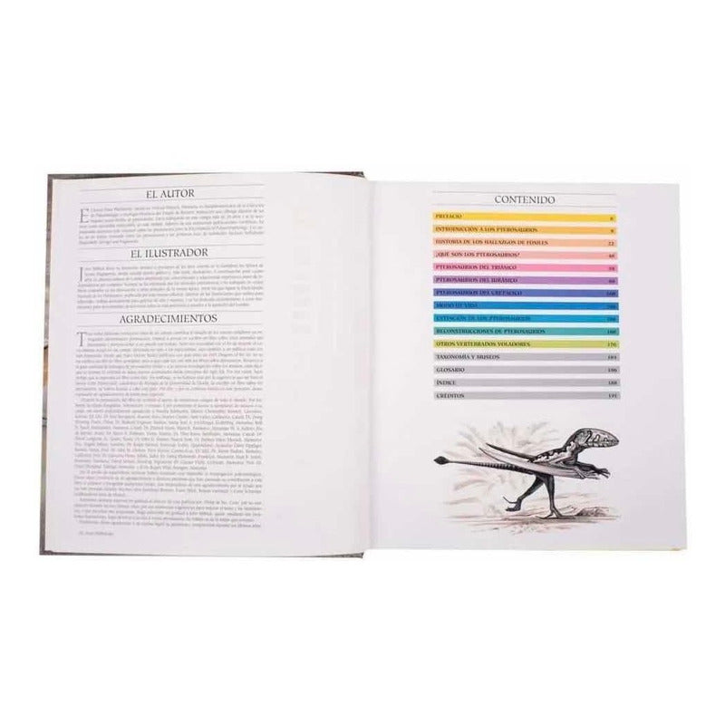 Atlas Ilustrado De Los Dinosaurios Voladores Pterosaurios Reseña: 192 páginas, tapa dura. En esta amena y completa guía se describen todos los pterosaurios conocidos, con más de 600 ilustraciones, 255 fotografías, más de 250 dibujos de esqueletos y 16 magníficas ilustraciones a doble página.