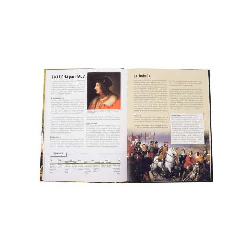 Batallas Terrestres / Jaime de Montoto Este volumen explora la visión panorámica e histórica de la guerra terrestre del modo más gráfico y esencial posible: Cada batalla se presenta con un mapa completo a doble página con la estrategia paso a paso, su ficha técnica, los antecedentes, la cronología, la cronología y las consecuencias que tuvo para la historia militar. Volumen en tapa dura Formato 20 cm x 27 cm 160 páginas Fotografías e ilustraciones a color
