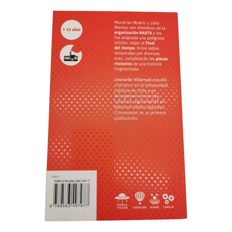 Crononautas / Leonardo Villarroel Reseña: Una historia de viajes en el tiempo con misterios, suspenso y humor. Entre saltos temporales por diversas eras, los protagonistas vivirán una gran aventura que completará las piezas restantes de una historia fragmentada y desafiará las leyes de la física.