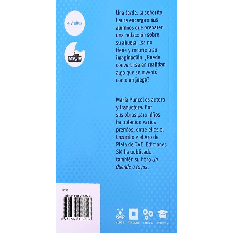 Abuelita Opalina / Maria Puncel Como parte de las tareas de clase, Isa tiene que escribir una composición sobre su abuela, lo que representa un problema, pues ella no la conoció. Con una gran imaginación, se inventa una que poseía los talentos de los abuelos de varios compañeros de la clase. Ante la protesta de los niños, cuyas abuelas le envían varios obsequios a Isa, ésta tiene que resolver la controversia que ha suscitado su composición. Cuando ya pensaba que estaba todo perdido, llega su tía Nieves a quien Isa acoge como su abuela. Como parte de las tareas de clase, Isa tiene que escribir una composición sobre su abuela, lo que representa un problema pues ella no la conoció. Con una gran imaginación, se inventa una que poseía los talentos de las abuelas de varios compañeros de clase. Ante la protesta de los niños, cuyas abuelas le envían varios obsequios a Isa, ésta tiene que resolver la controversia que ha suscitado su composición. Cuando ya pensaba que todo estaba perdido, llega su tía Nieves a quien Isa acoge como su abuela. ISBN: 9789563492507 Alto: 19.00 cm Ancho: 12.00 cm Páginas: 96 Encuadernación: Rústica