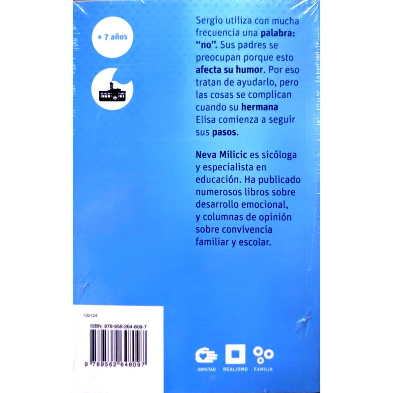 ¡ya No Quiero Decir No ! / Neva Milicic Sergio utiliza con mucho frecuencia una palabra ""no"". Sus padres se preocupan porque esto afecta su humor y tratan de ayudarlo, pero las cosas se complican cuando su hermana Elisa se contagia con la ""enfermedad del no"". Entonces se dan cuenta de que comienzan sus esfuerzos por aprender a decir ""si""" Nombre YA NO QUIERO DECIR NO Autor MILICIC, NEVA ISBN 9562648095 Editorial SM Encuadernación Rústico