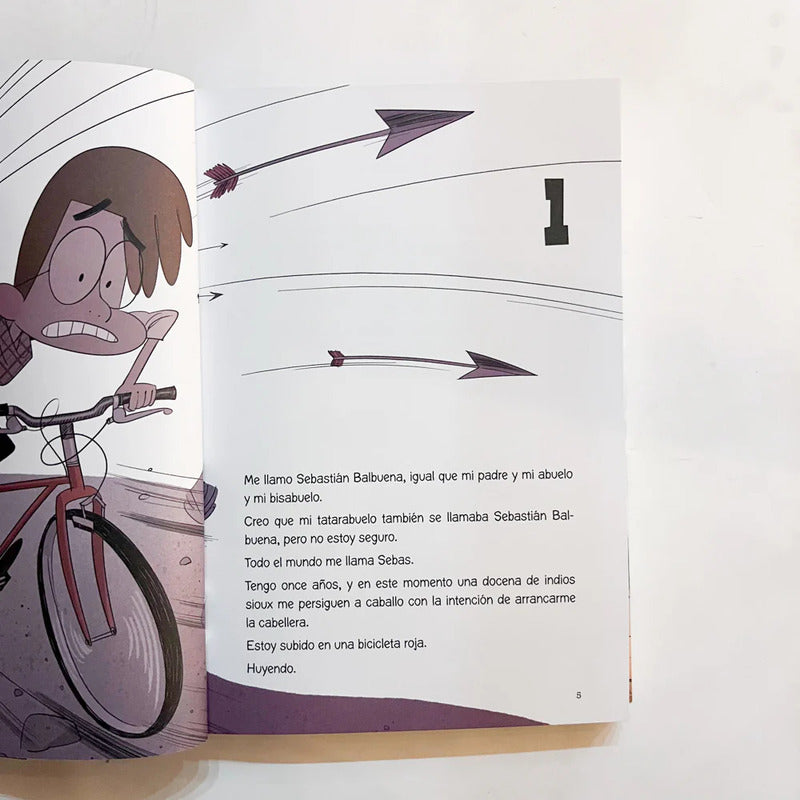 La Aventura De Los Balbuena En El Lejano Oeste / R. Santiago Reseña: Todo empezó un día normal y corriente. Habíamos ido a comprar unas bicis mi papá, mis dos hermanos, mi vecina Carmen y su hija María. Estábamos en mitad del estacionamiento, listos para pedalear, cuando de repente ocurrió: un ruido en el cielo, un resplandor, un rayo que cae y de pronto… estábamos en el salvaje oeste. ¡La aventura acababa de comenzar!
