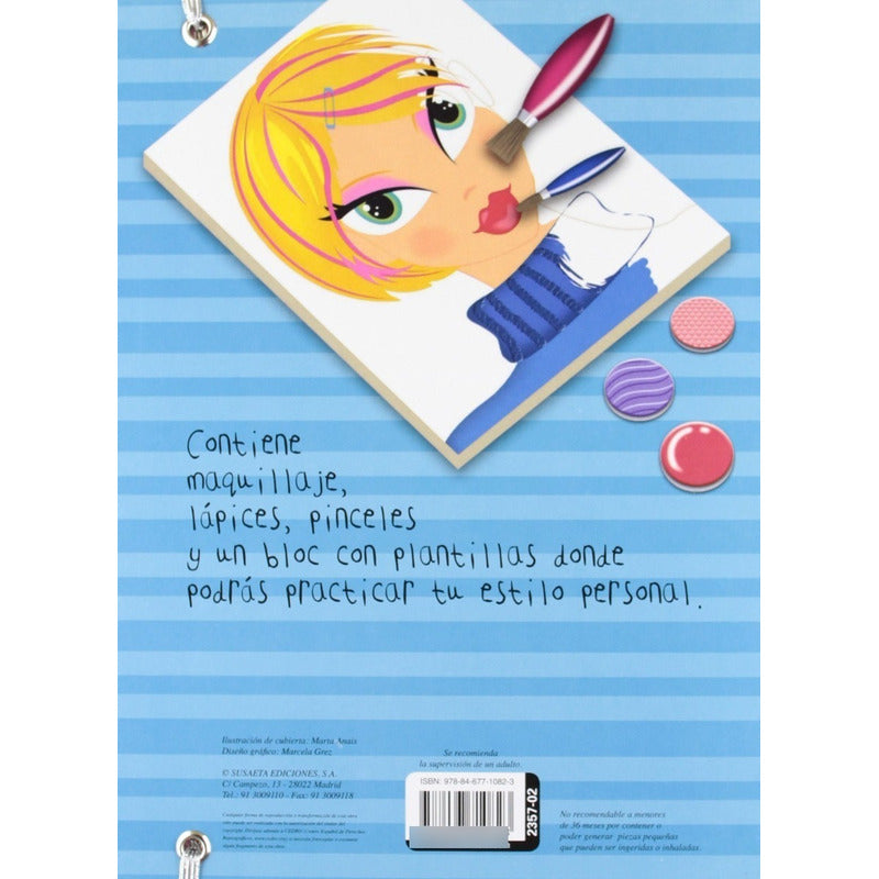 Diseño Mi Estilo (portada 2) Contiene Maquillaje / Susaeta 20 Páginas. ¿Quieres aprender a maquillarte y practicar todo lo necesario para hacerlo perfecto? Aquí tienes lo que necesitas. Una carpetita que contiene maquillaje, lápices, pinceles y un block con plantillas donde podrás ensayar tu estilo personal y el de tus amigas.