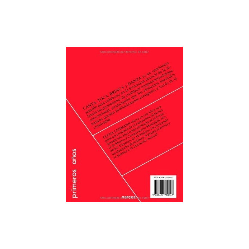 Canta Toca Brinca Y Danza / Elena Lehmann Reseña: Este libro es un cancionero sencillo para colaborar en la formación musical de la infancia sin pretensiones de establecer ninguna metodología convencional, propiciando que los elementos musicales básicos queden profundamente arraigados a través de la creatividad.