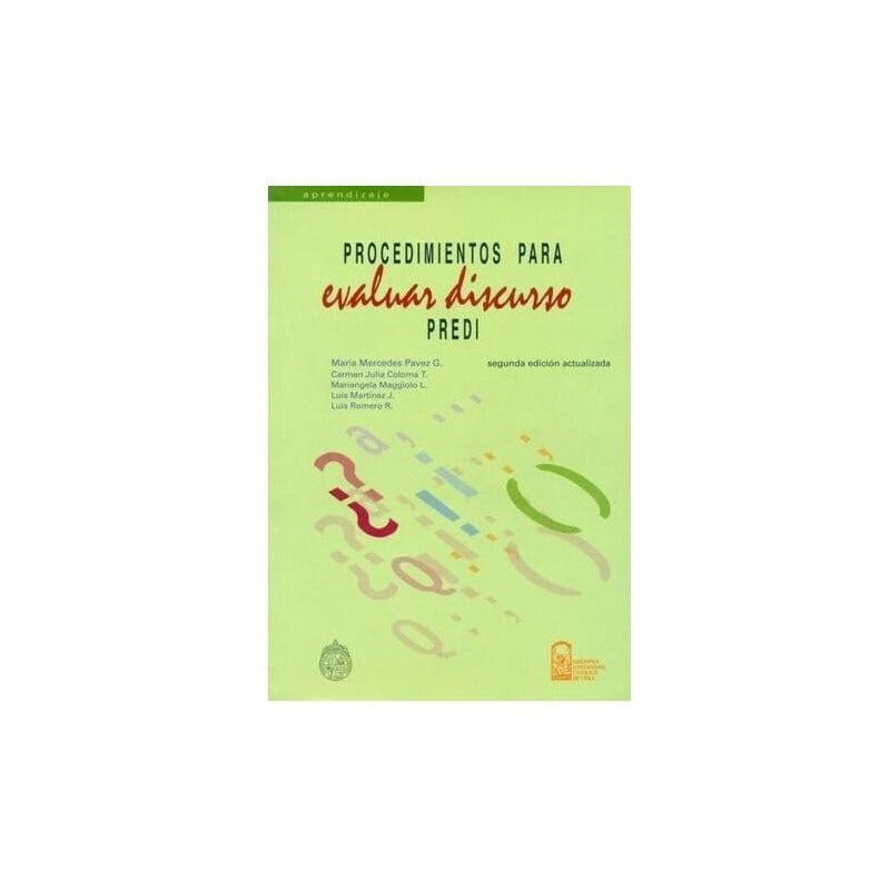 Procedimientos Evaluar Discurso Predi / M Mercedes Pavez Reseña: Constituye un barrido que debe ser profundizado antes de diagnosticar con certeza un déficit en el discurso y de diseñar estrategias de estimulación. Consta de una prueba y de un Método de evaluación, instrumentos que se aplican en forma individual. Utilizan como modalidad el lenguaje oral, incluyen normas para cotejar los puntajes obtenidos y poseen serios análisis estadísticos de validez y confiabilidad.