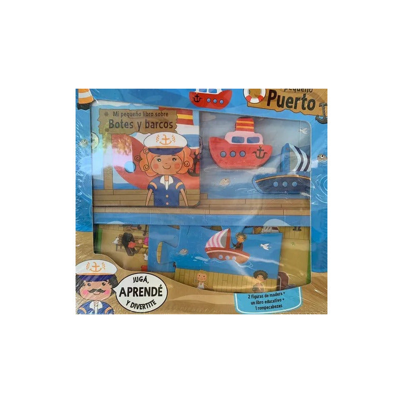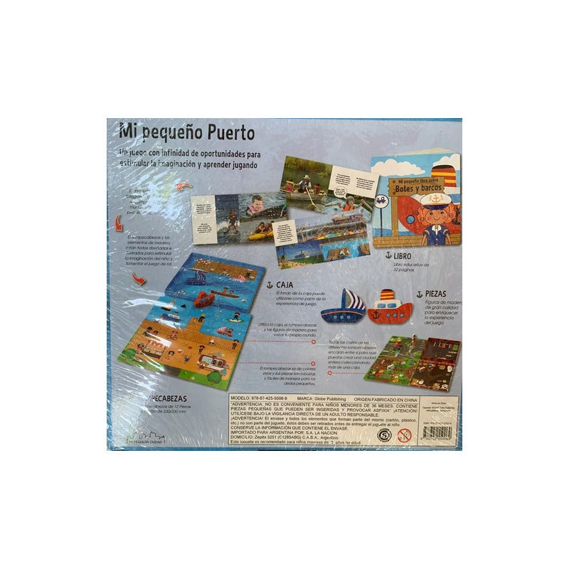 Mi Pequeño Puerto Juega, Aprende Y Diviertete Reseña: Un juego con infinidad de oportunidades para estimular la imaginación y aprender jugando 1.- Libro educativo de 32 páginas 2.- ROMPECABEZAS de 12 piezas de cartón 330x330 mm 3.- CAJA en el fondo puede utilizarse como parte de la experiencia de juego 4.- PIEZAS figuras de madera de gran calidad para enriquecer la experiencia del juego Un juego con infinidad de oportunidades para estimular la imaginación y aprender jugando. El libro está lleno de fotografías que facilitan la comprensión del mundo actual a los pequeños aprendices. El rompecabezas y los elementos de madera esta diseñados e ilustrados para estimular la imaginación del niño y fomentar el juego de rol. El fondo de la caja puede utilizarse como parte de la experiencia de juego. Utiliza la caja, el rompecabezas y las figuras de madera para crear tu mundo. El rompecabezas es de colores vivos y sus piezas son robustas y fáciles de manejar para los dedos pequeños. Todas las calles de los diferentes rompecabezas encajan entre sí para que puedas crear una ciudad entera coleccionando más de una caja.