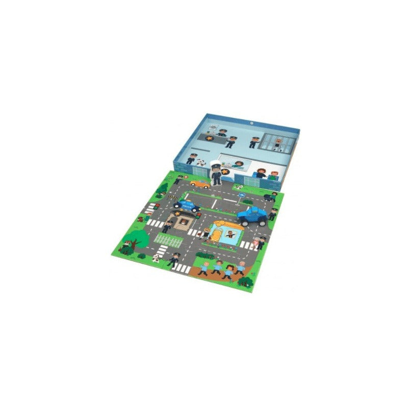 Mi Pequeño Estacion De Policia Juega, Aprende Y Diviertete Reseña: Un juego con infinidad de oportunidades para estimular la imaginación y aprender jugando 1.- Libro educativo de 32 páginas 2.- ROMPECABEZAS de 12 piezas de cartón 330x330 mm 3.- CAJA en el fondo puede utilizarse como parte de la experiencia de juego 4.- PIEZAS figuras de madera de gran calidad para enriquecer la experiencia del juego Un juego con infinidad de oportunidades para estimular la imaginación y aprender jugando. El libro está lleno de fotografías que facilitan la comprensión del mundo actual a los pequeños aprendices. El rompecabezas y los elementos de madera esta diseñados e ilustrados para estimular la imaginación del niño y fomentar el juego de rol. El fondo de la caja puede utilizarse como parte de la experiencia de juego. Utiliza la caja, el rompecabezas y las figuras de madera para crear tu mundo. El rompecabezas es de colores vivos y sus piezas son robustas y fáciles de manejar para los dedos pequeños. Todas las calles de los diferentes rompecabezas encajan entre sí para que puedas crear una ciudad entera coleccionando más de una caja.